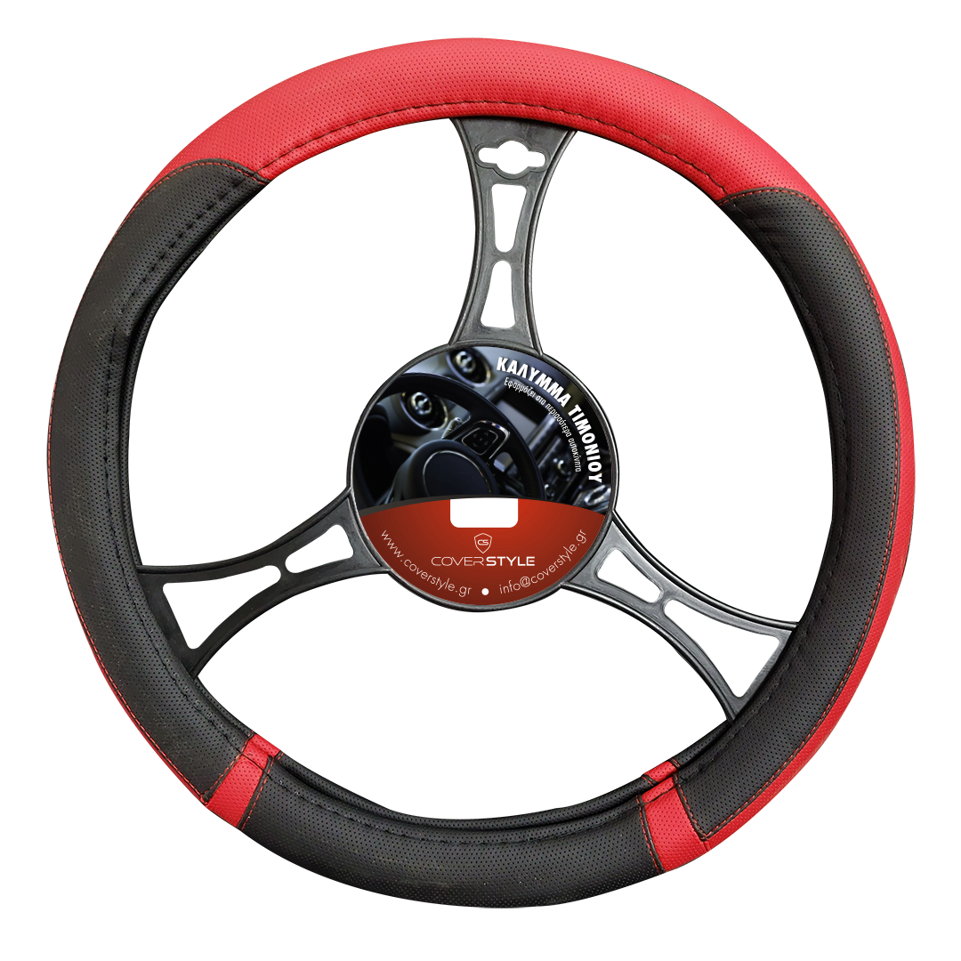 Κάλυμμα τιμονιού AURA PVC δερματίνη κόκκινο / μαύρο Medium 37-39