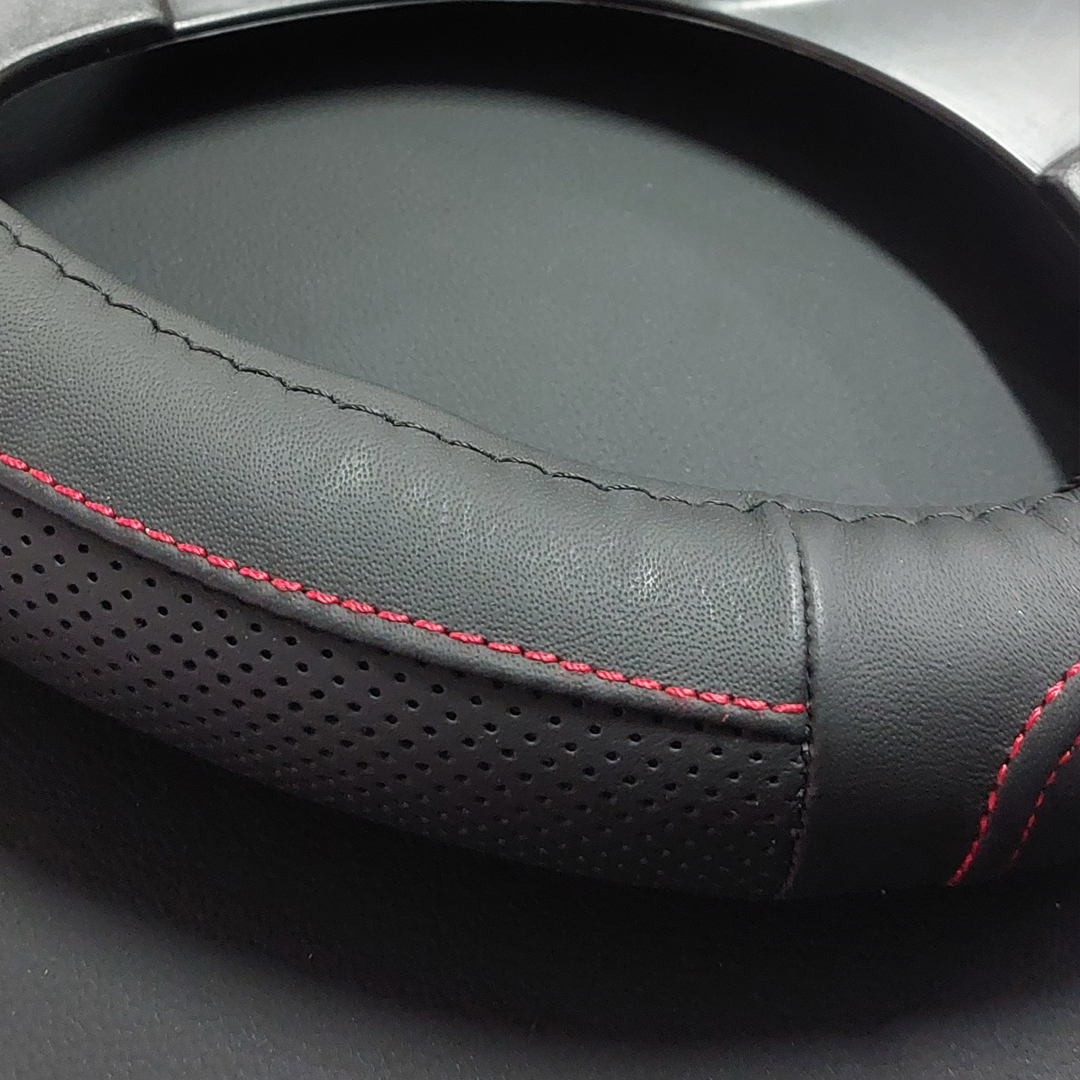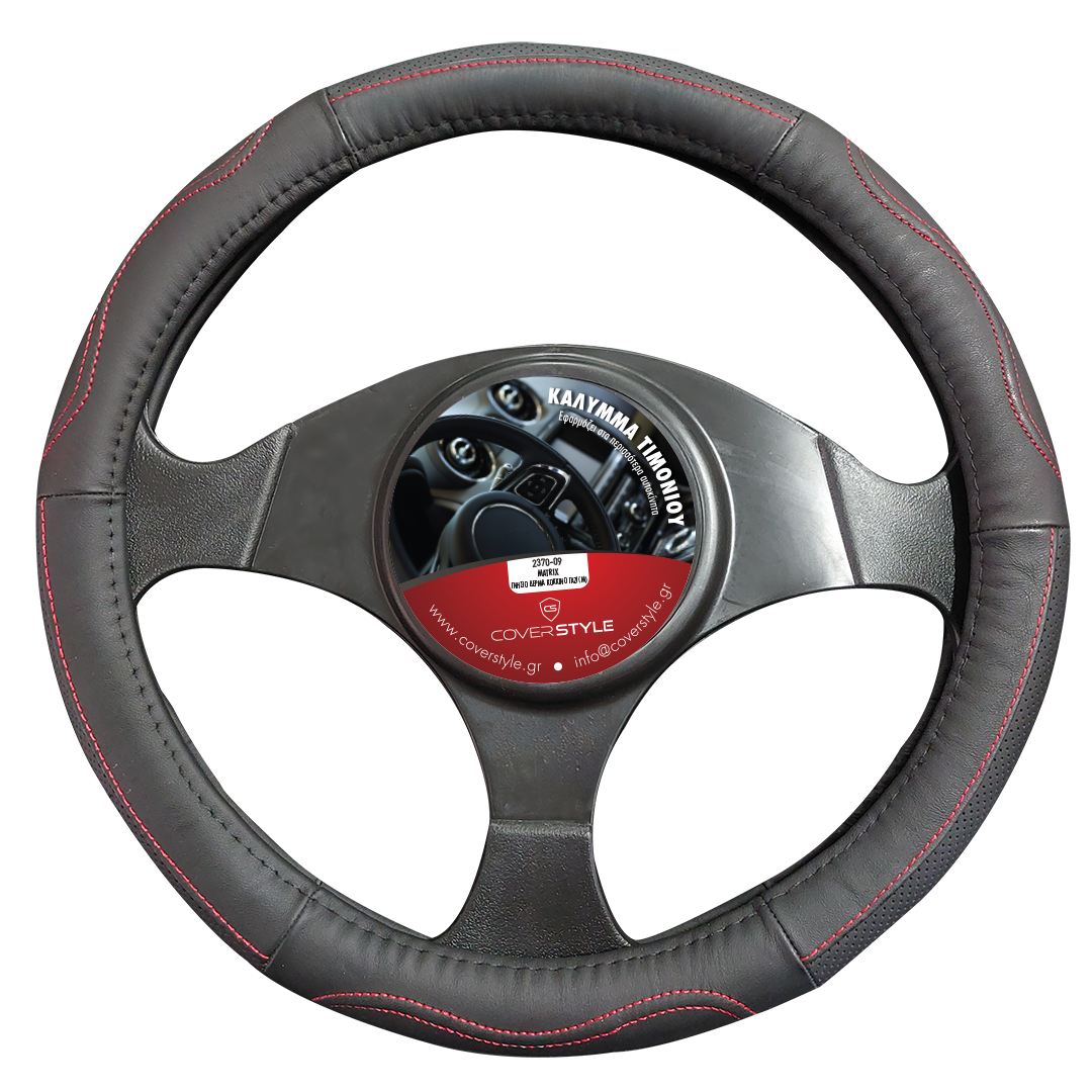 Κάλυμμα τιμονιού ΜATRIX γνήσιο δέρμα μαύρο με κόκκινες ραφές Medium 37-39 cm