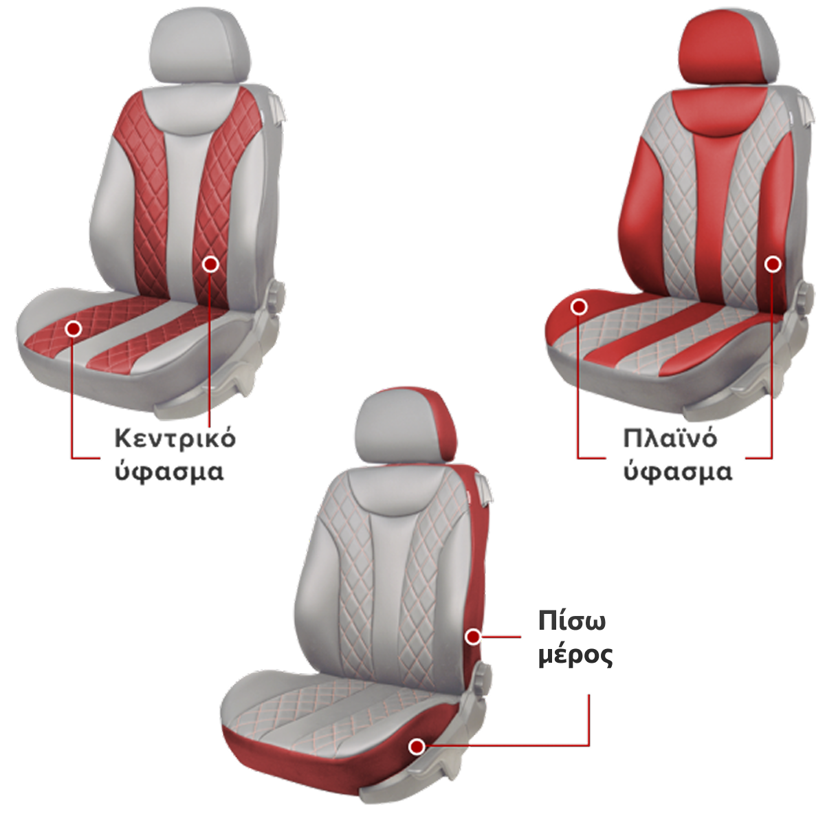 Η σειρά καλυμμάτων “Α ΚΑΠΙΤΟΝΕ” αποτελεί το πιο δύσκολο και επιτυχημένο σχέδιο στα 40 έτη λειτουργίας της εταιρείας. Αποτελείται από PVC δερματίνη ανώτερης ποιότητας ειδικά σχεδιασμένη στην χώρα μας για την κατασκευή καλυμμάτων αυτοκινήτου να αντέχει σε υψηλές αλλά και χαμηλές θερμοκρασίες χωρίς να χάνει την ελαστικότητα της και να σπάει, και να μην ξεθωριάζει. Η δερματίνη καπιτονάρεται με πολυέστερ κλωστή 3 περασμάτων σε πολλούς χρωματισμούς και σε σχήμα ρόμβου.